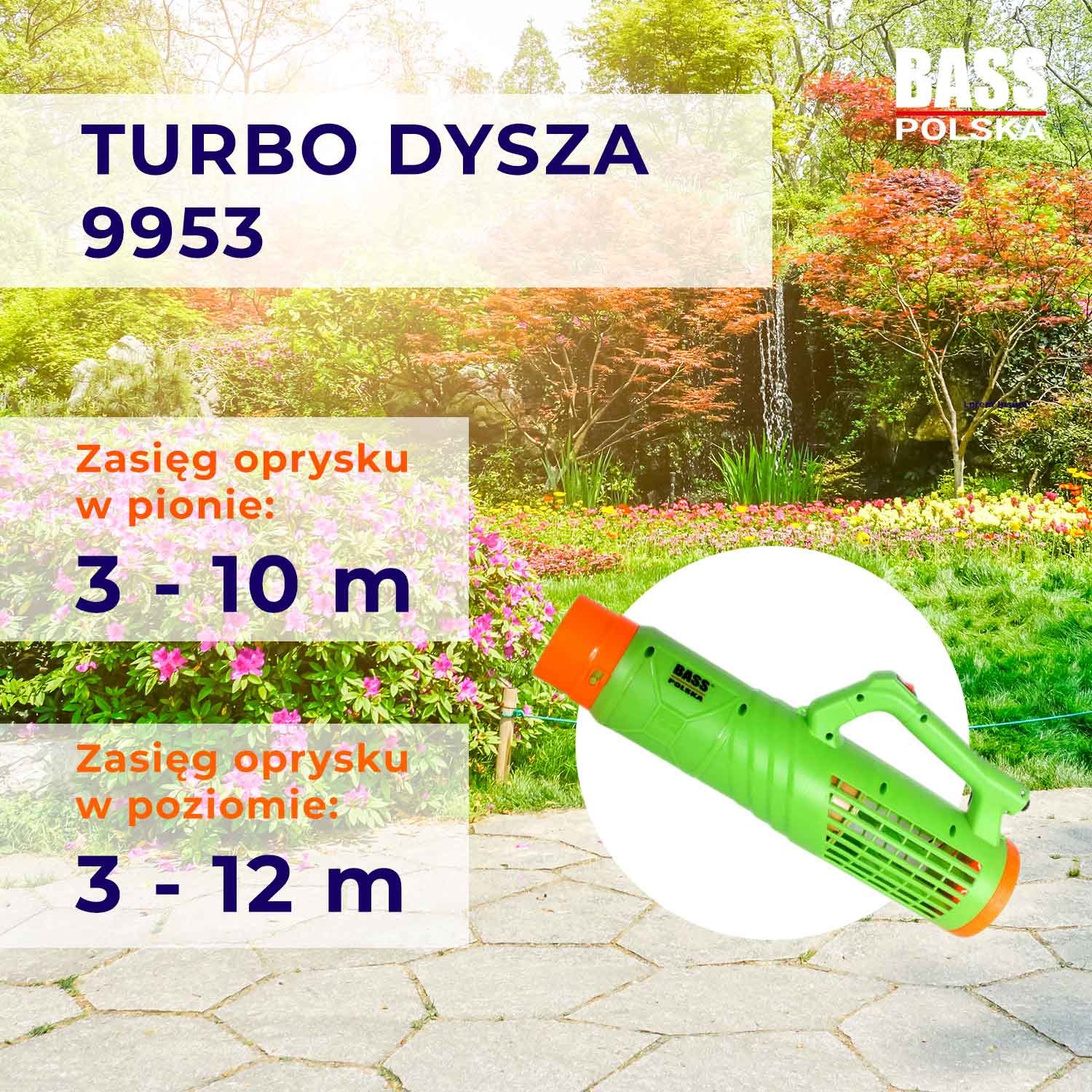 Dokup turbo dyszę do opryskiwacza Bass Polska, aby zwiększyć zasięg oprysku. Turbo dysza Bass Polska umożliwia poziomy oprysk w zakresie 3 – 12 metrów oraz oprysk pionowy w zakresie 3 -10 metrów.